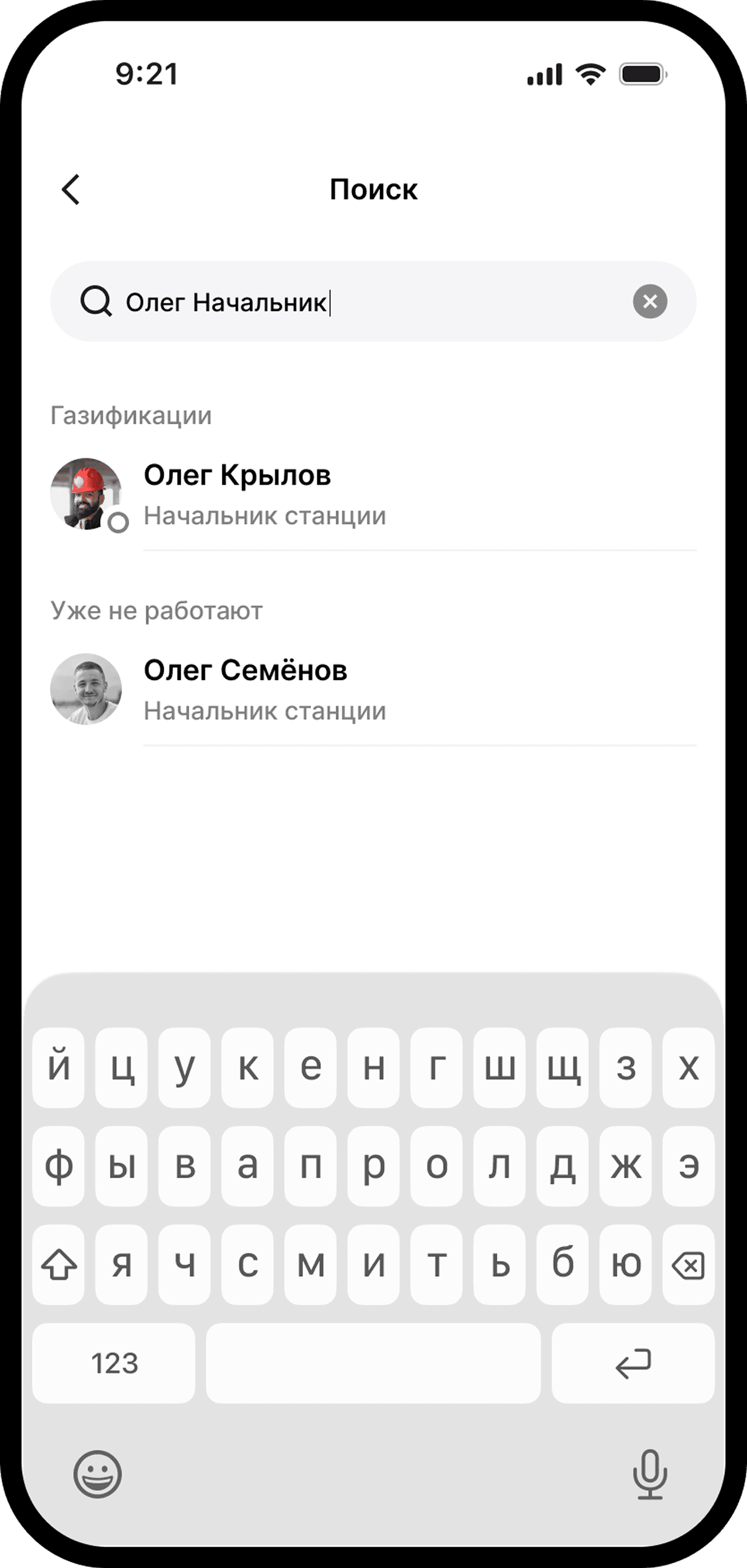В поиске можно найти коллегу по имени, должности или компании — даже если его контактов нигде нет.